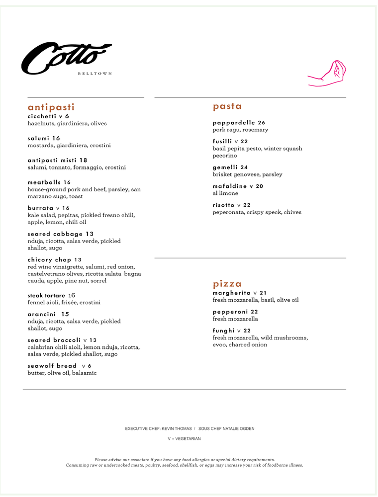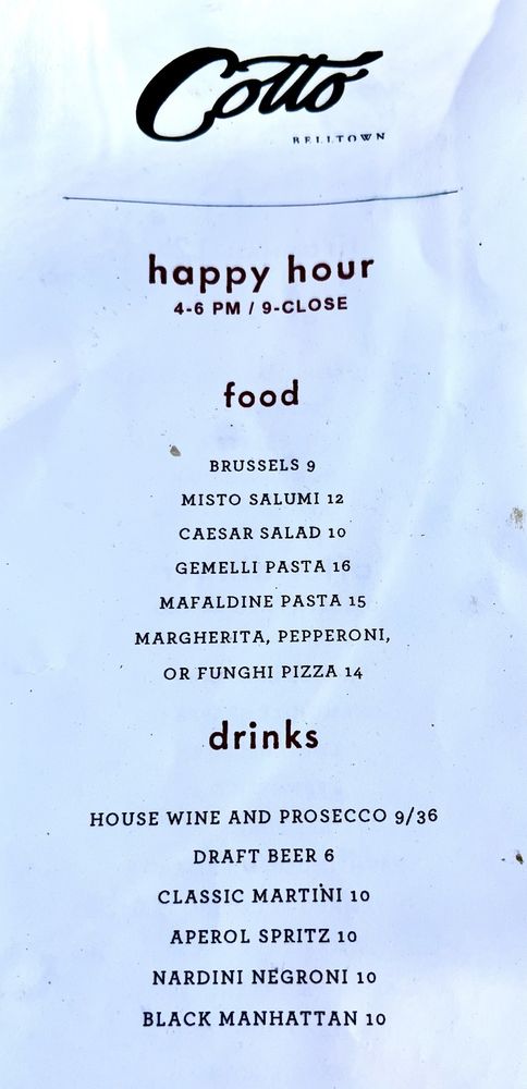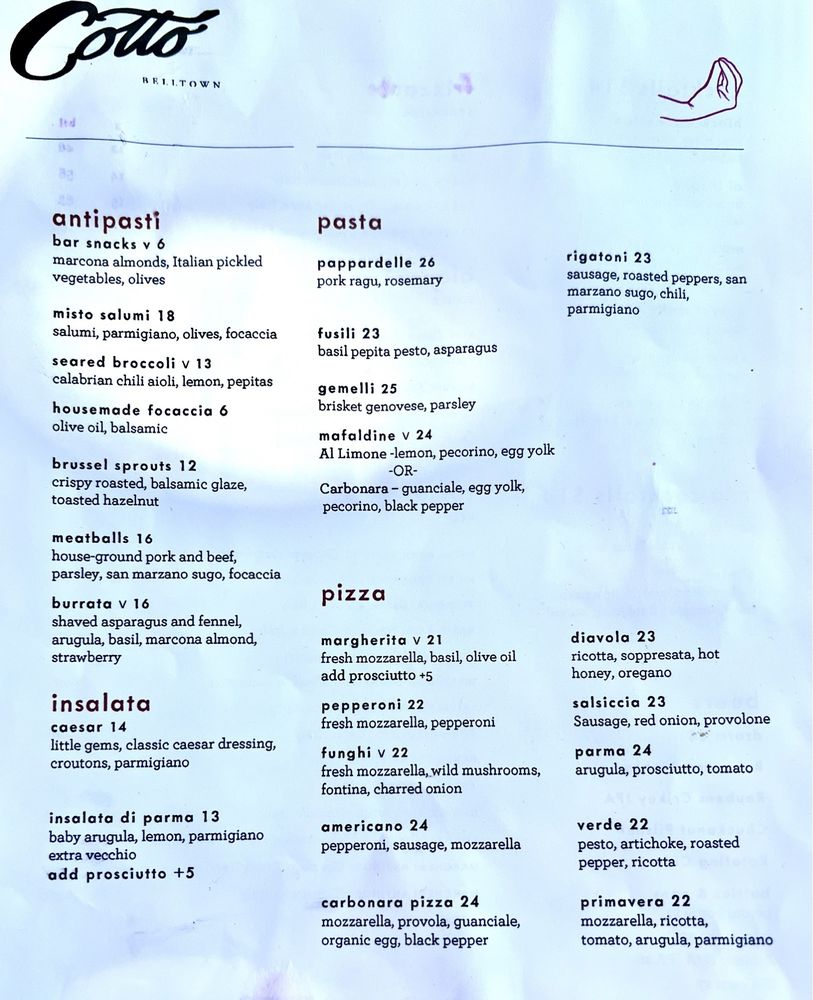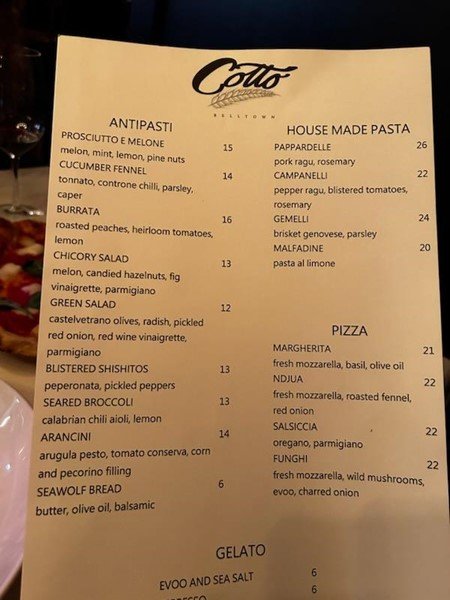 Cotto Belltown is an Italian restaurant located in Seattle, offering a range of amenities such as reservation options, delivery services, and a full bar. Customers have praised the friendly service and delicious dishes, with standout items like the salsiccia pizza, mushroom pizza, and beet salad receiving high praise. The cozy atmosphere and excellent selection of drinks add to the overall dining experience. While some customers noted minor inconveniences like loud music and cold temperatures, the quality of the food and service makes Cotto Belltown a highly recommended spot for a date night or casual meal. If you're looking for a neighborhood bistro with exceptional pasta dishes and friendly staff, Cotto Belltown is definitely worth a visit.